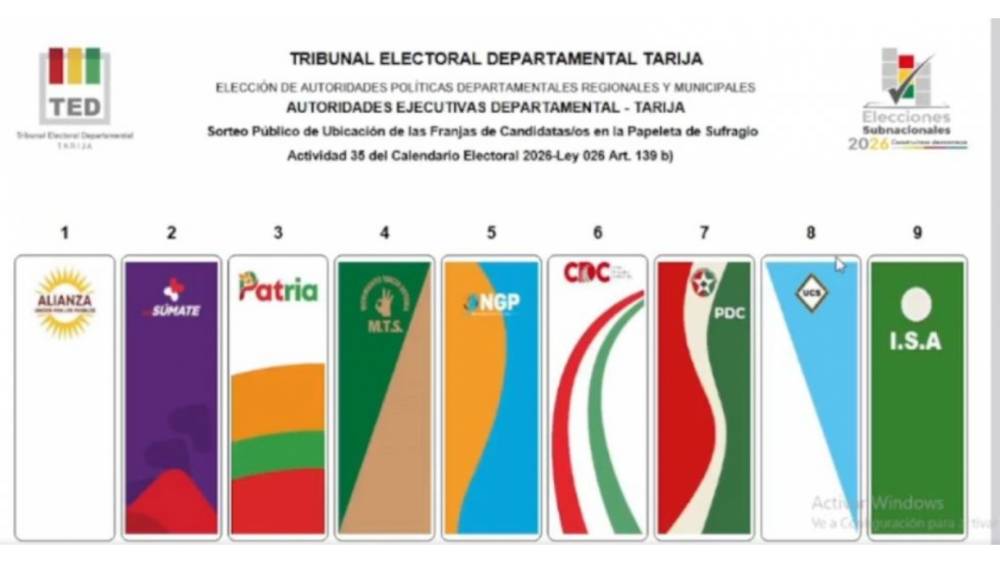 La mañana de este viernes 16 de enero, el Tribunal Electoral Departamental (TED) de Tarija llevó adelante el sorteo público de la ubicación de las candidaturas en la papeleta de sufragio para la Gobernación de Tarija, en el marco del calendario electoral rumbo a las Elecciones Subnacionales 2026.